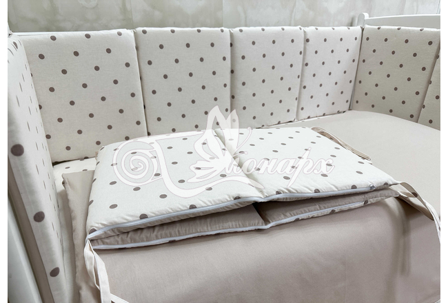 Бортики СО СЪЕМНЫМИ ЧЕХЛАМИ в кроватку: защитят Вашего малыша от ушибов, сквозняков, солнечных лучей и не дадут малышу запутаться в прутьях кроватки.