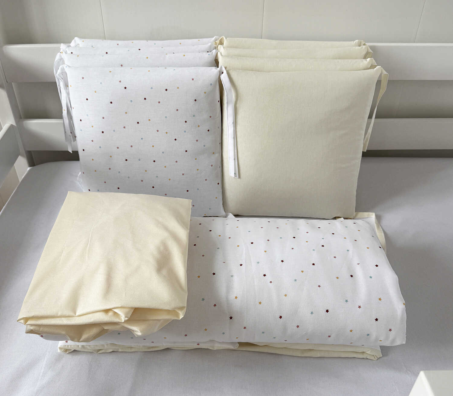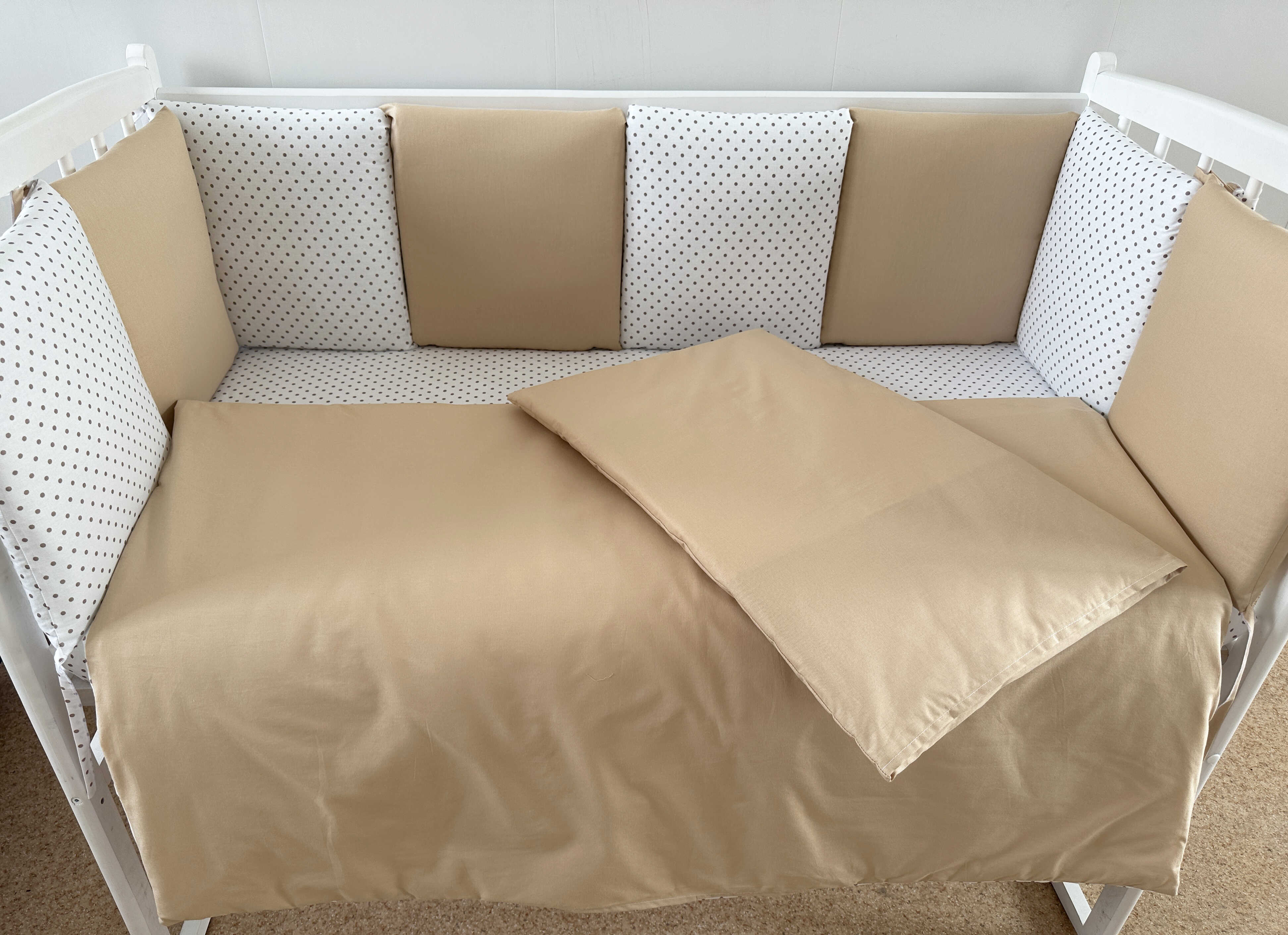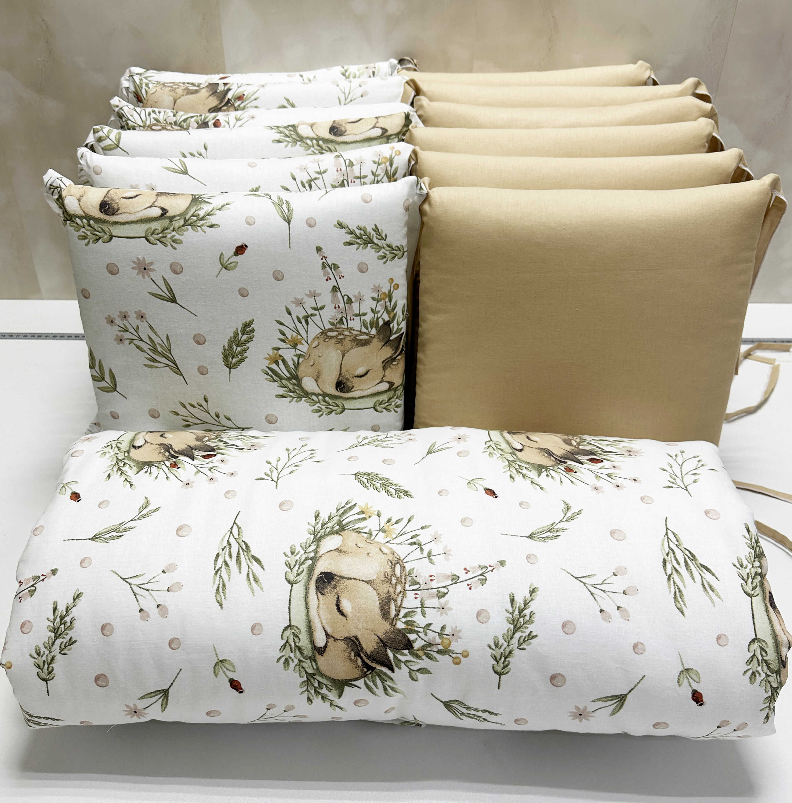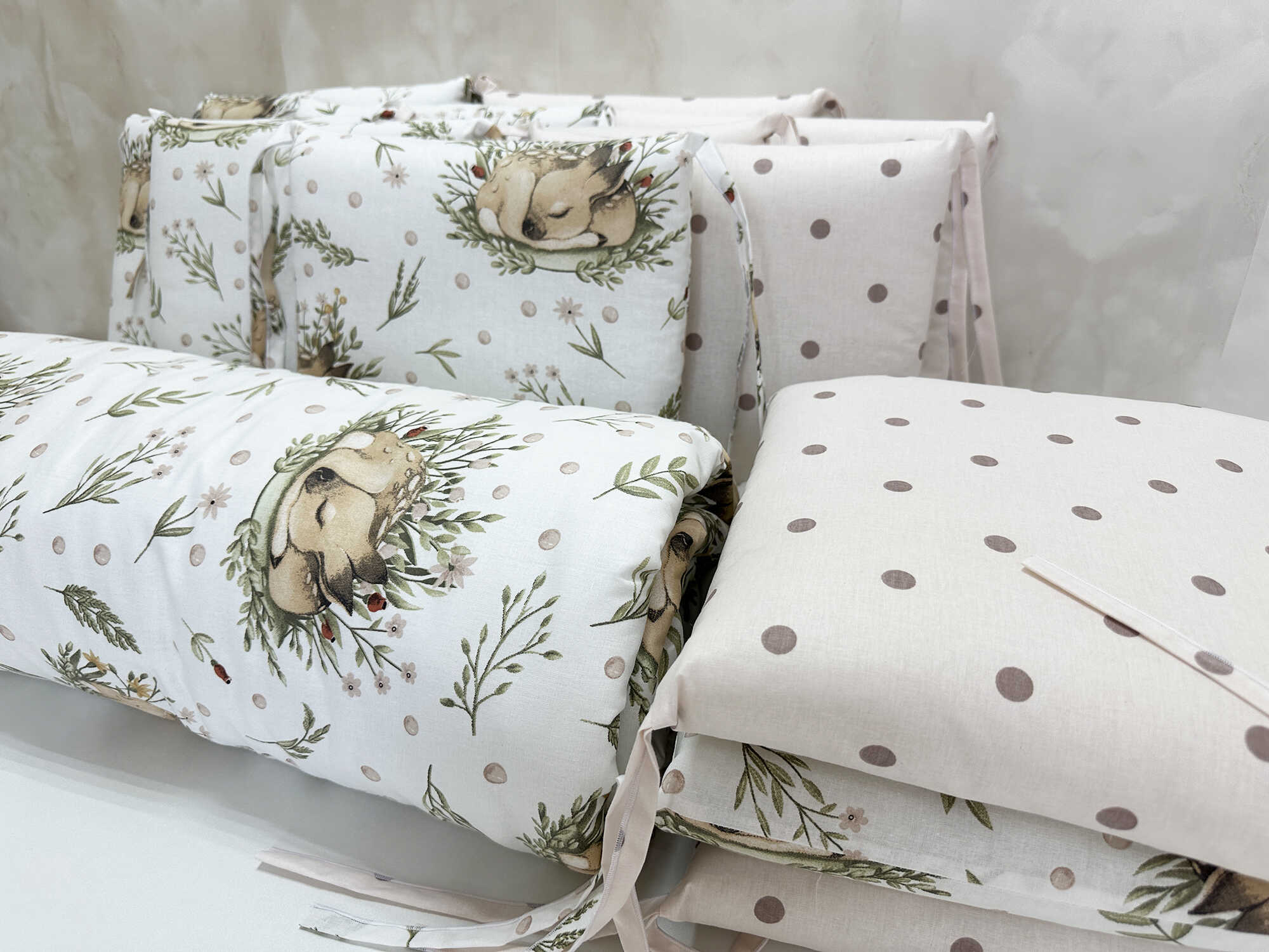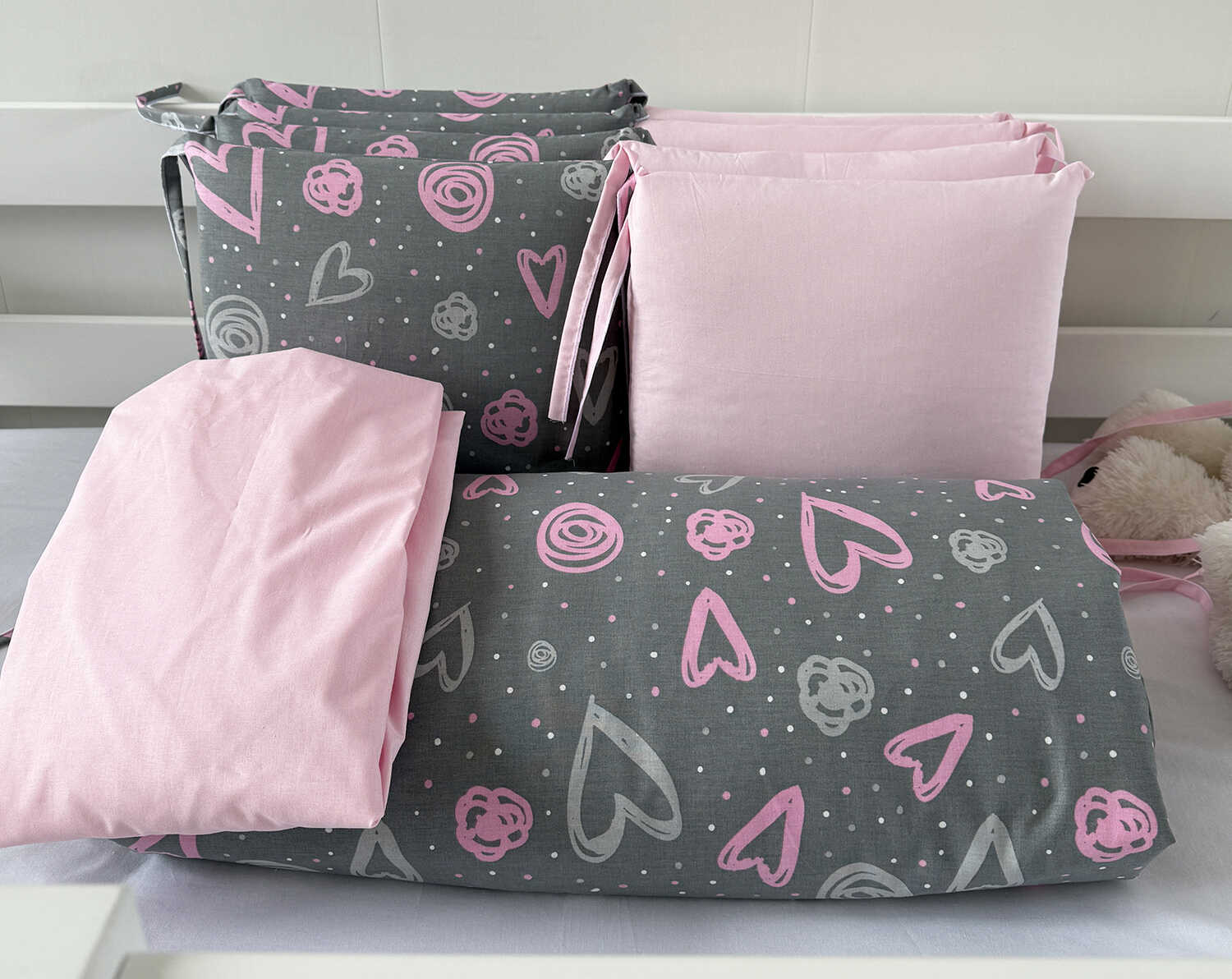 Комплекты в детскую кроватку для новорожденных с бортиками подушечками