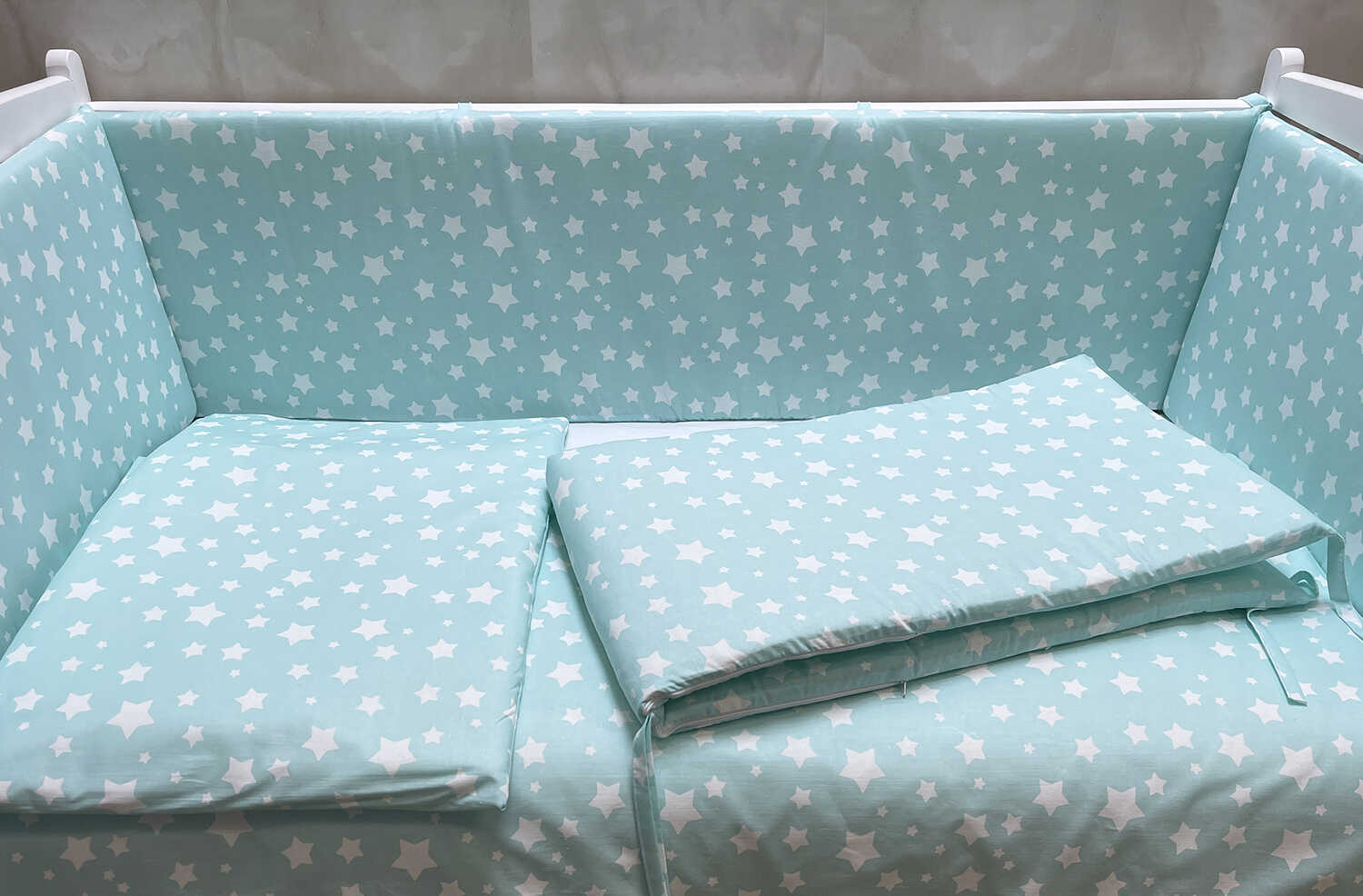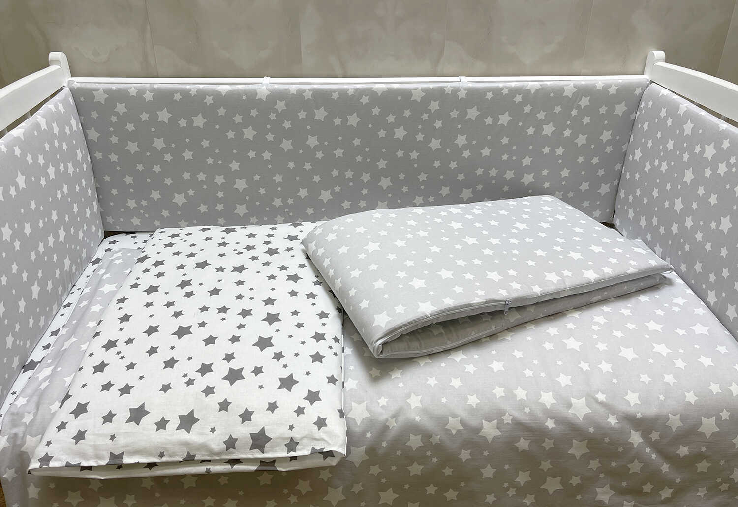 Организация стального места ребенка заканчивается не только приобретением детской кроватки, обязательно необходим комплект в кроватку. Купить его можно на нашем сайте, по низкой цене от производителя.