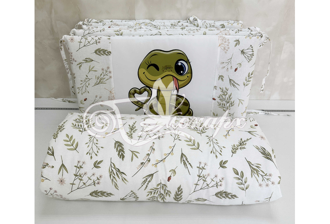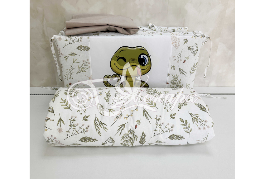 Бортики СО СЪЕМНЫМИ ЧЕХЛАМИ в кроватку: защитят Вашего малыша от ушибов, сквозняков, солнечных лучей и не дадут малышу запутаться в прутьях кроватки. - Простыня на резинке 60х120 см (подходит для стандартной кроватки)