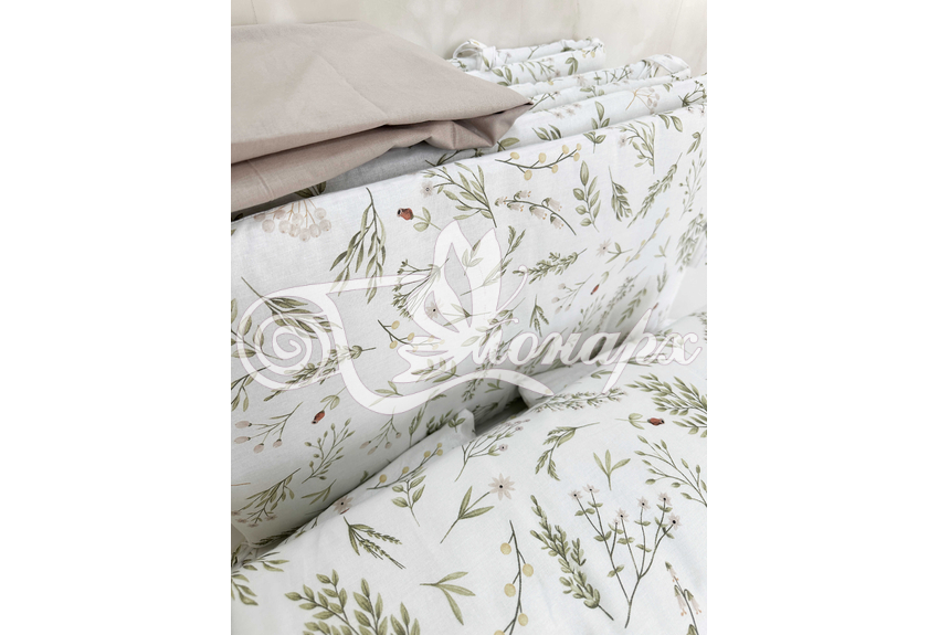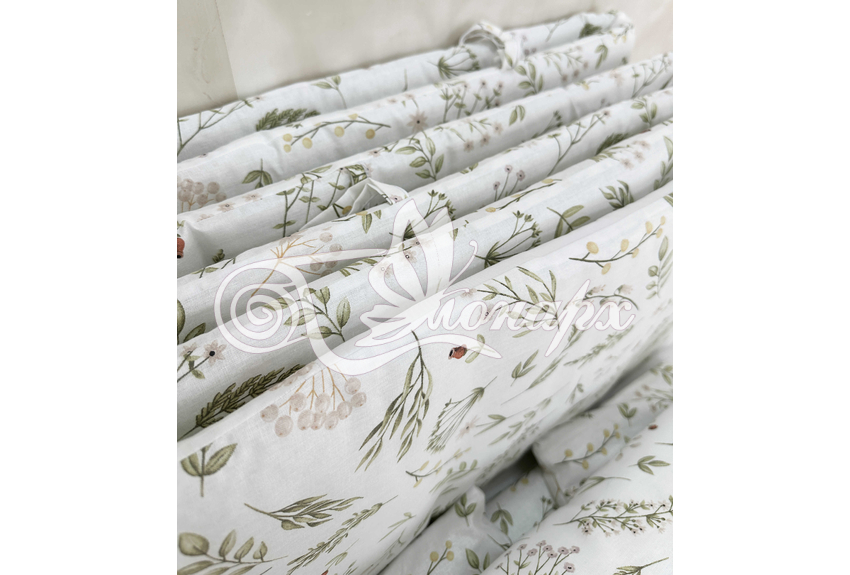 Бортики СО СЪЕМНЫМИ ЧЕХЛАМИ в кроватку: защитят Вашего малыша от ушибов, сквозняков, солнечных лучей и не дадут малышу запутаться в прутьях кроватки. - Простыня на резинке 60х120 см (подходит для стандартной кроватки)