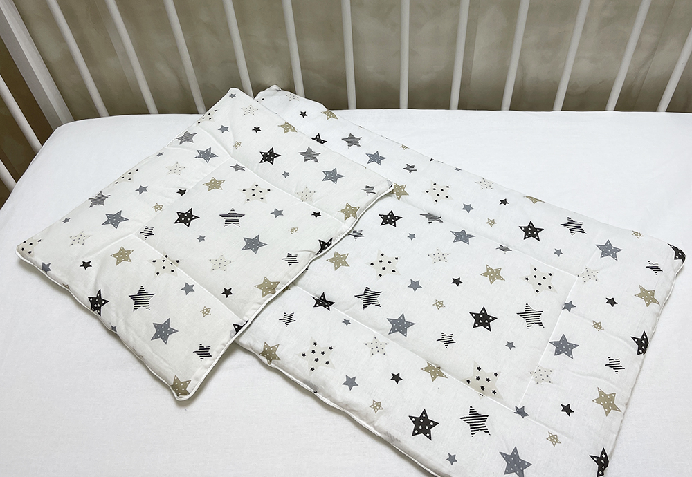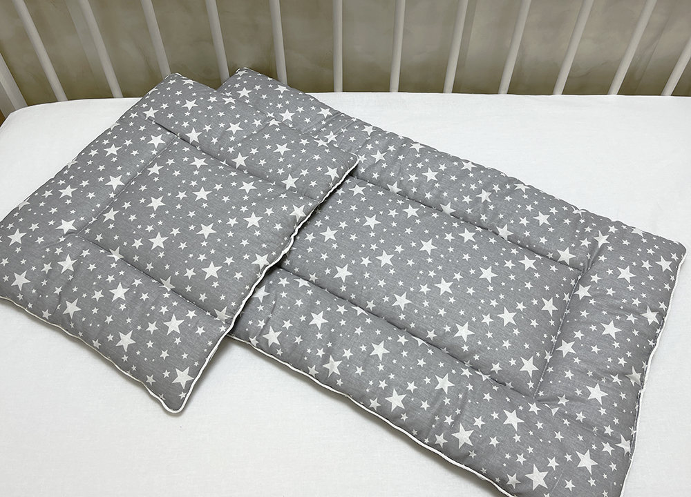 Ткань: 100% хлопок. Каждое изделие из набора простегано, матрасик и подушка обработаны декоративным..