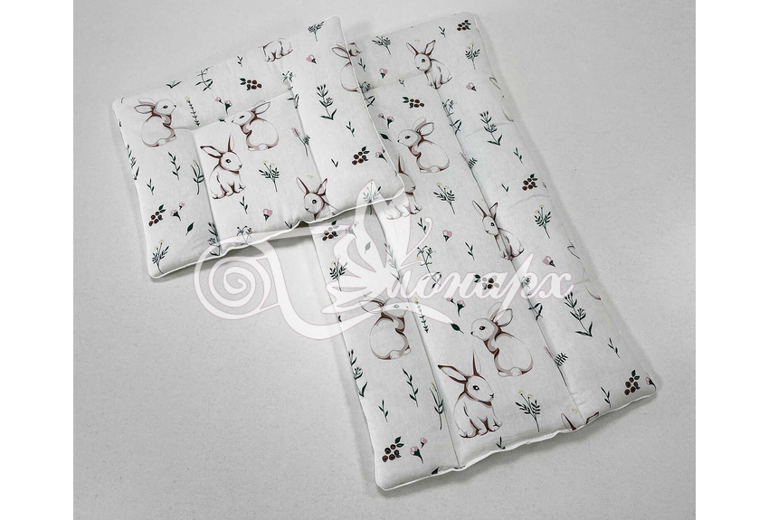 Каждое изделие из набора простегано, матрасик и подушка обработаны декоративным кантом.