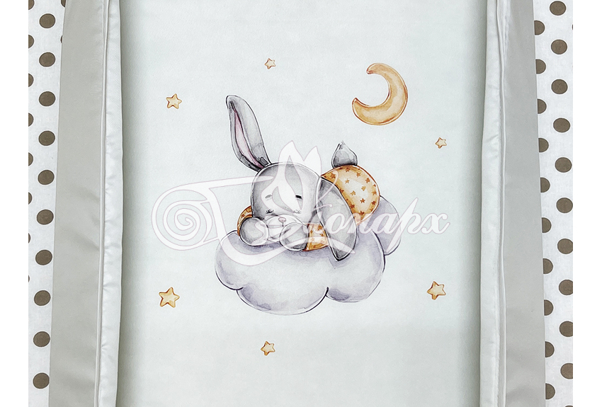 Бортики сгибающиеся, выполняют защитную функцию. Изделие предназначено для малышей с рождения до годика, выполнено из плащевой ткани, наполнитель волтекс.