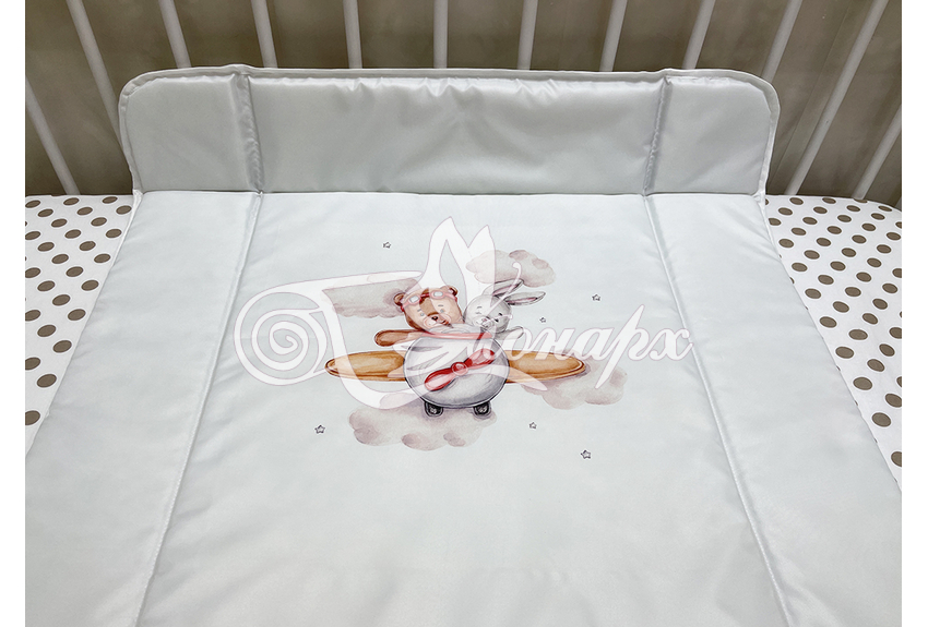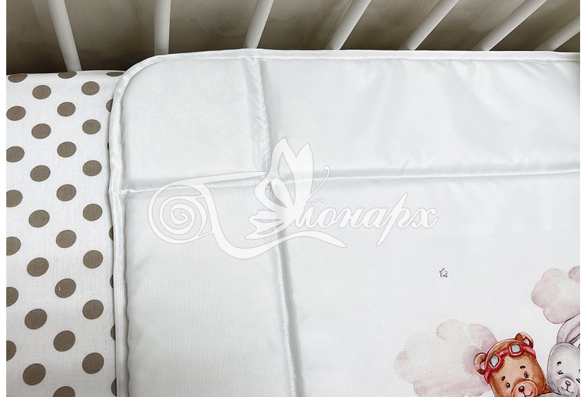 Бортики сгибающиеся, выполняют защитную функцию. Изделие предназначено для малышей с рождения до годика, выполнено из плащевой ткани, наполнитель волтекс.