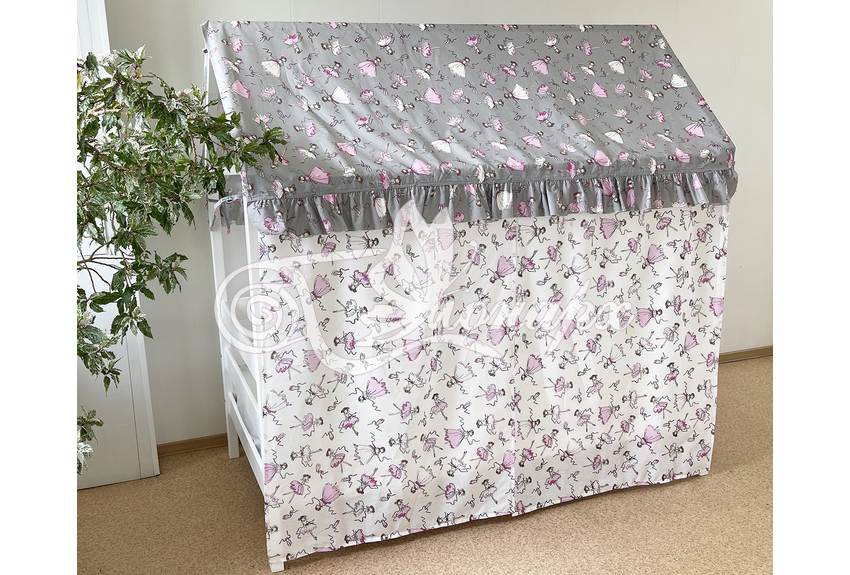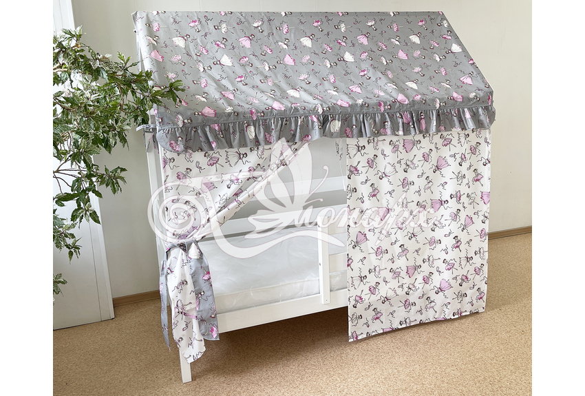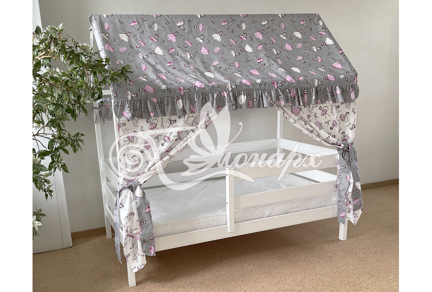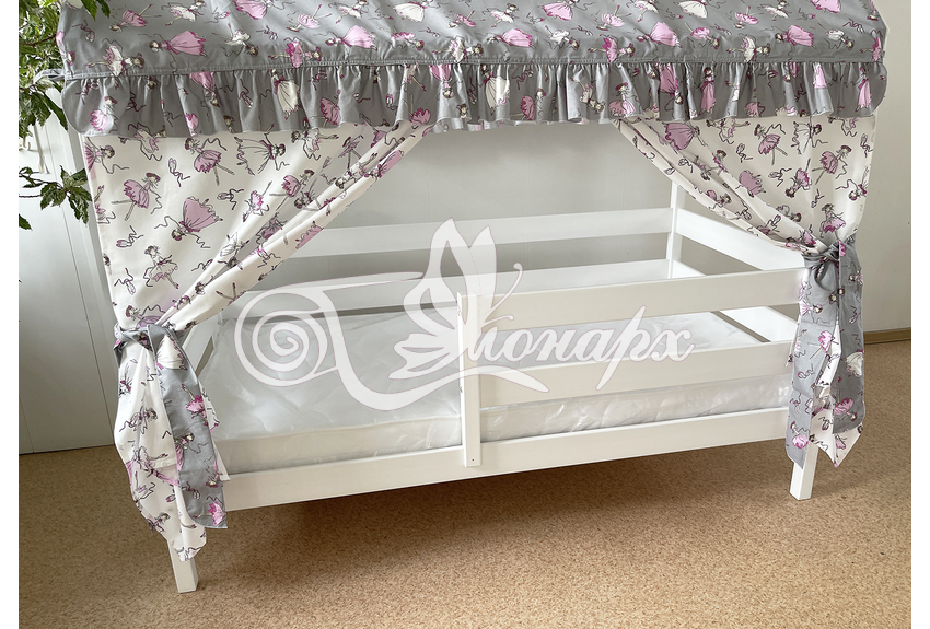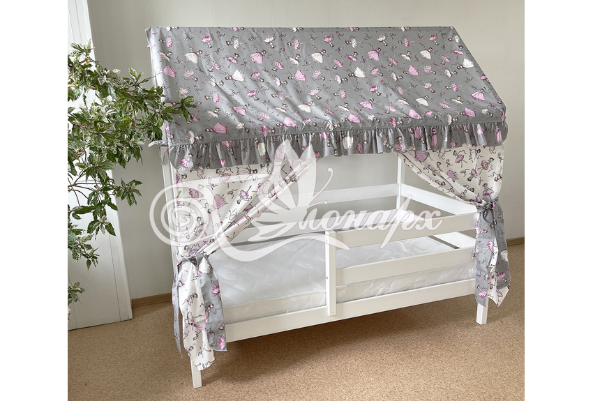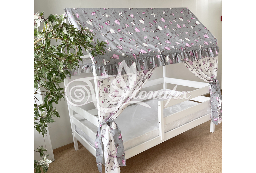 Крыша и шторы для кроватки домика ТД-1 купить в Северодвинске.Теги: комплект в кроватку домик, текстиль для домика, крыша для домика