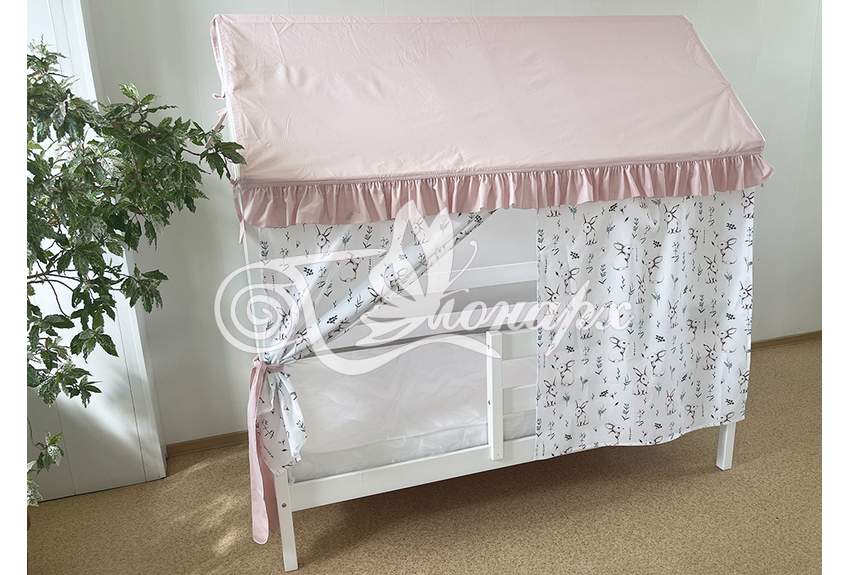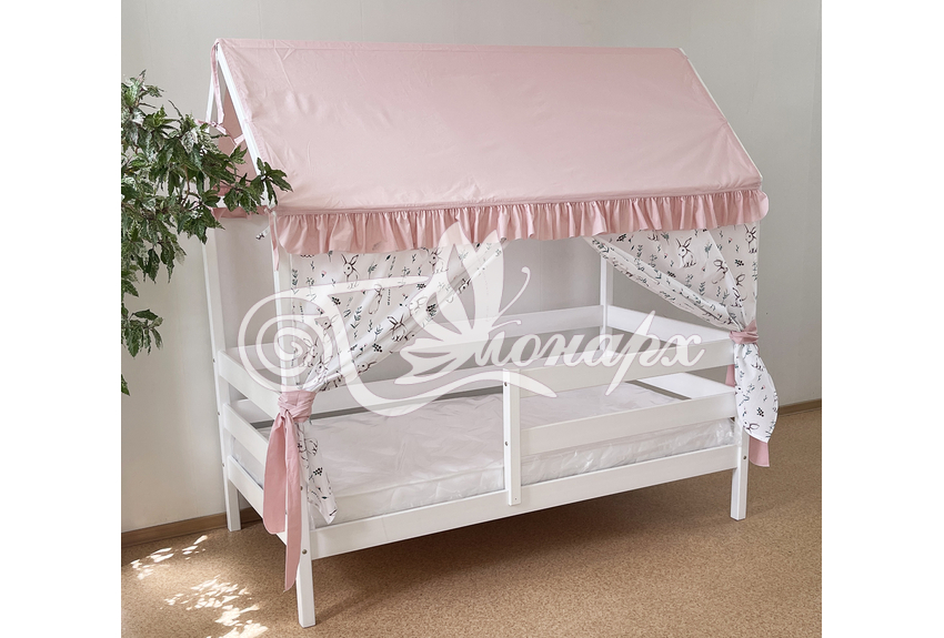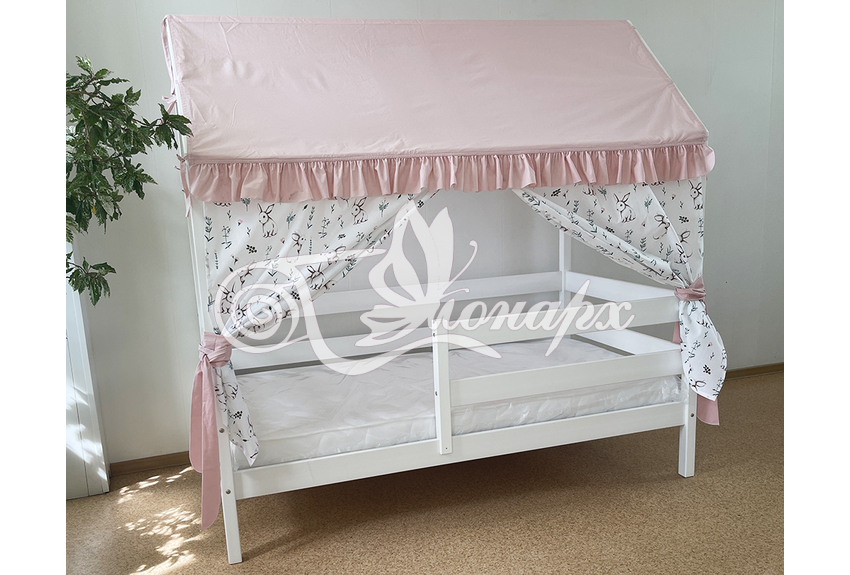 Крыша и шторы для кроватки домика ТД-2 купить в Северодвинске.Теги: комплект в кроватку домик, текстиль для домика, крыша для домика