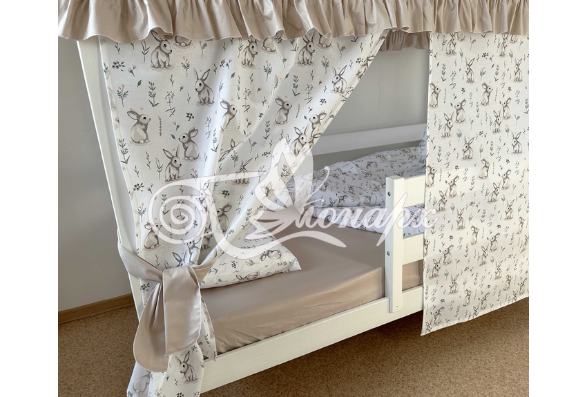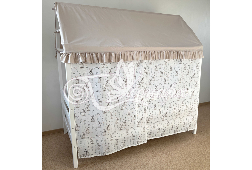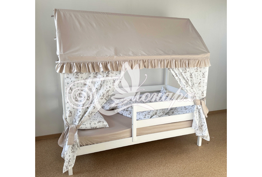 Крыша и шторы для кроватки домика ТД-28 купить в Северодвинске.Теги: комплект в кроватку домик, текстиль для домика, крыша для домика
