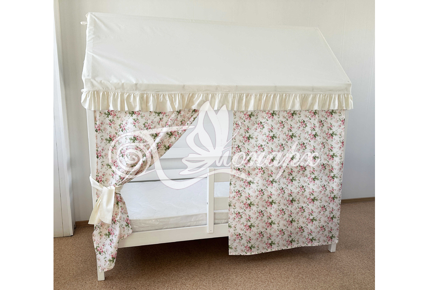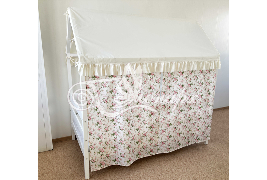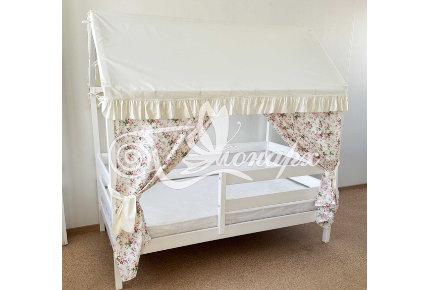 Крыша и шторы для кроватки домика ТД-32 купить в Северодвинске.Теги: комплект в кроватку домик, текстиль для домика, крыша для домика