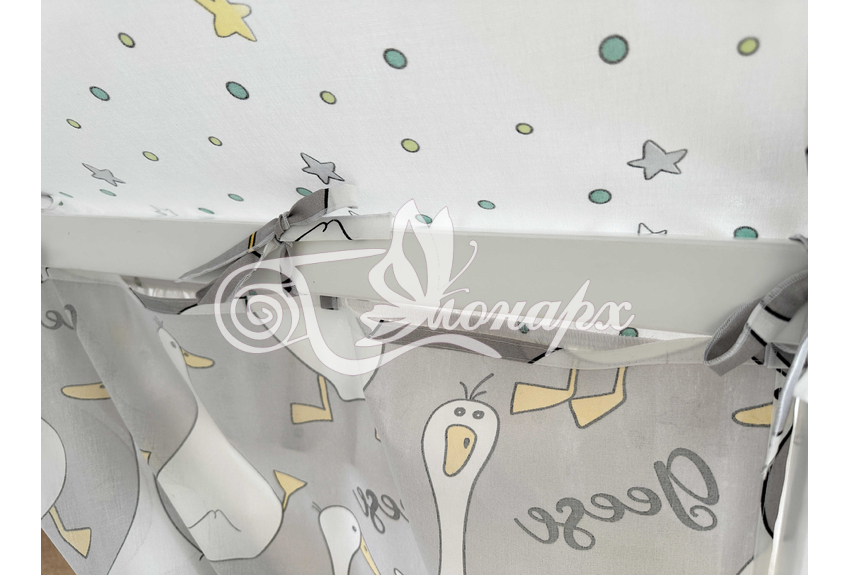 ширина - 82 см. - Занавески с завязками (по 4 завязки на каждой занавеске) на боковые стороны кроватки 2 шт.: