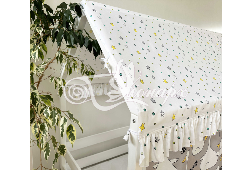 - Крыша текстильная на завязках (10 завязок) для кроватки домика: