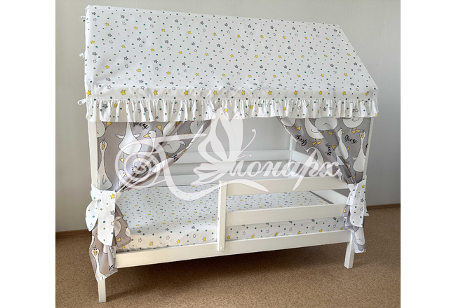 Крыша и шторы для кроватки домика ТД-38 купить в Северодвинске.Теги: комплект в кроватку домик, текстиль для домика, крыша для домика