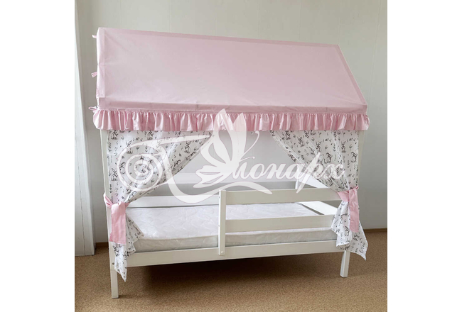 Крыша и шторы для кроватки домика ТД-39 купить в Северодвинске.Теги: комплект в кроватку домик, текстиль для домика, крыша для домика