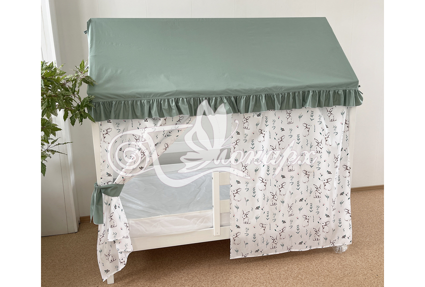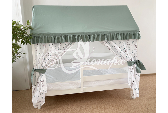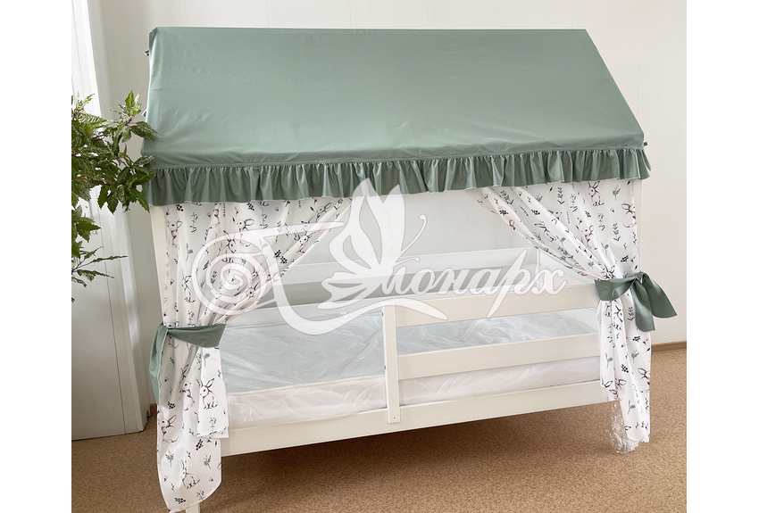 Крыша и шторы для кроватки домика ТД-7 купить в Северодвинске.Теги: комплект в кроватку домик, текстиль для домика, крыша для домика