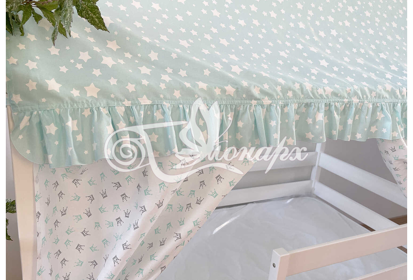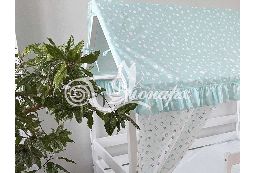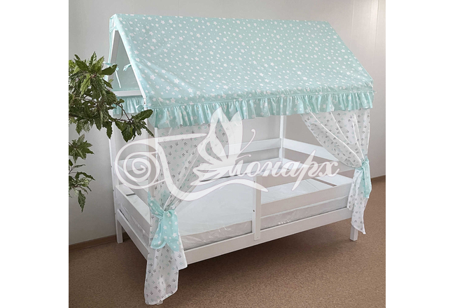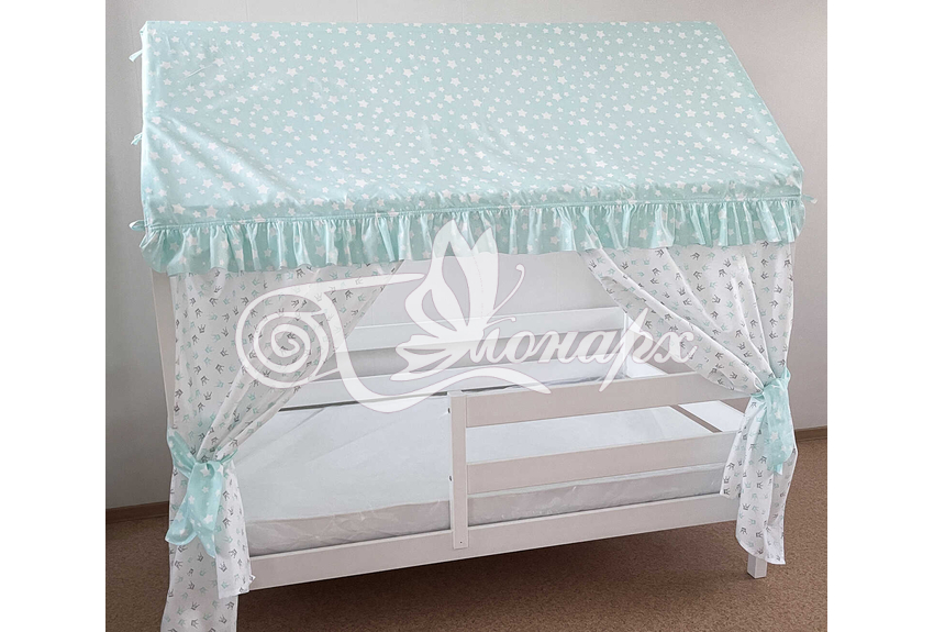 Крыша и шторы для кроватки домика ТД-8 купить в Северодвинске.Теги: комплект в кроватку домик, текстиль для домика, крыша для домика